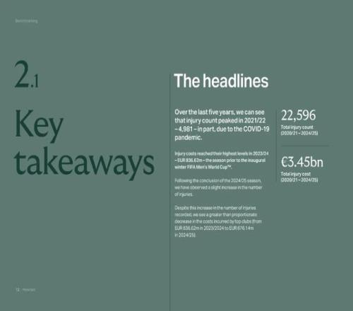 2020年疫情暴发,导致联赛后程被推迟到夏季高密度进行。随后连续经历了2021年欧洲杯,2022年世界杯,2024年欧洲杯和2025年世俱杯。赛程紧密使得大赛后的伤病激增,2022年卡塔尔世界杯中断了欧洲传统赛季,几乎没有增加冬休时间,直接造成伤病人次和成本的上升。2022年12月五大联赛的“伤病成本”为5032万欧元,2023年1月世界杯结束后仅1个月就飙升到7819万,增幅高达55%。