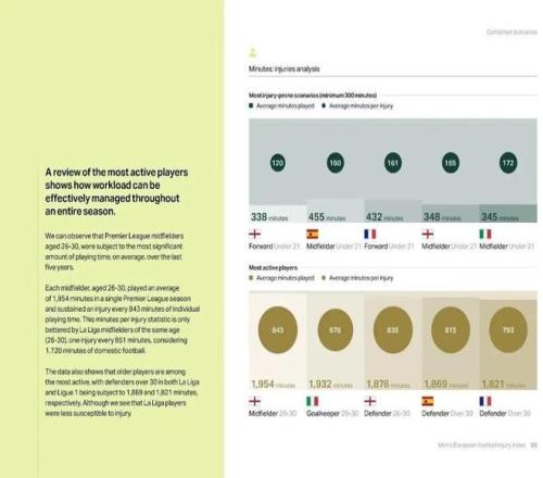 英超U21前锋平均踢120分钟就有1名受伤,受伤概率几乎是全体球员(338分钟)的3倍。精英运动员伤病风险专家索普认为,近年英超普遍将更多年轻球员提拔上一线队,他们过早接受英超高强度快节奏的冲击,伤病概率增加是意料中事。